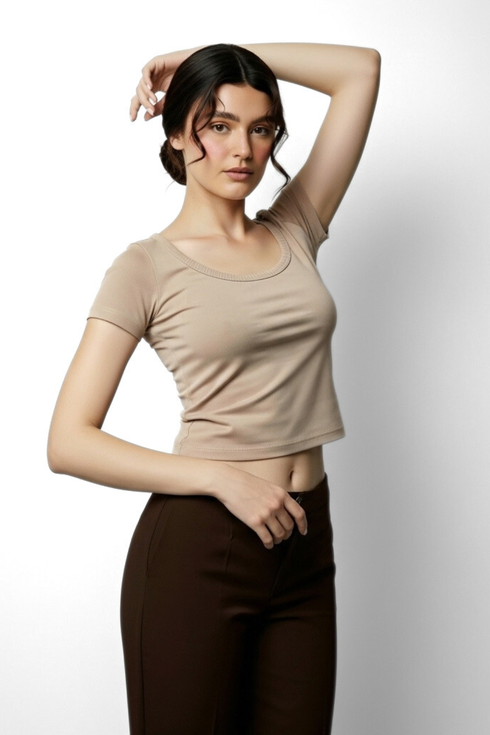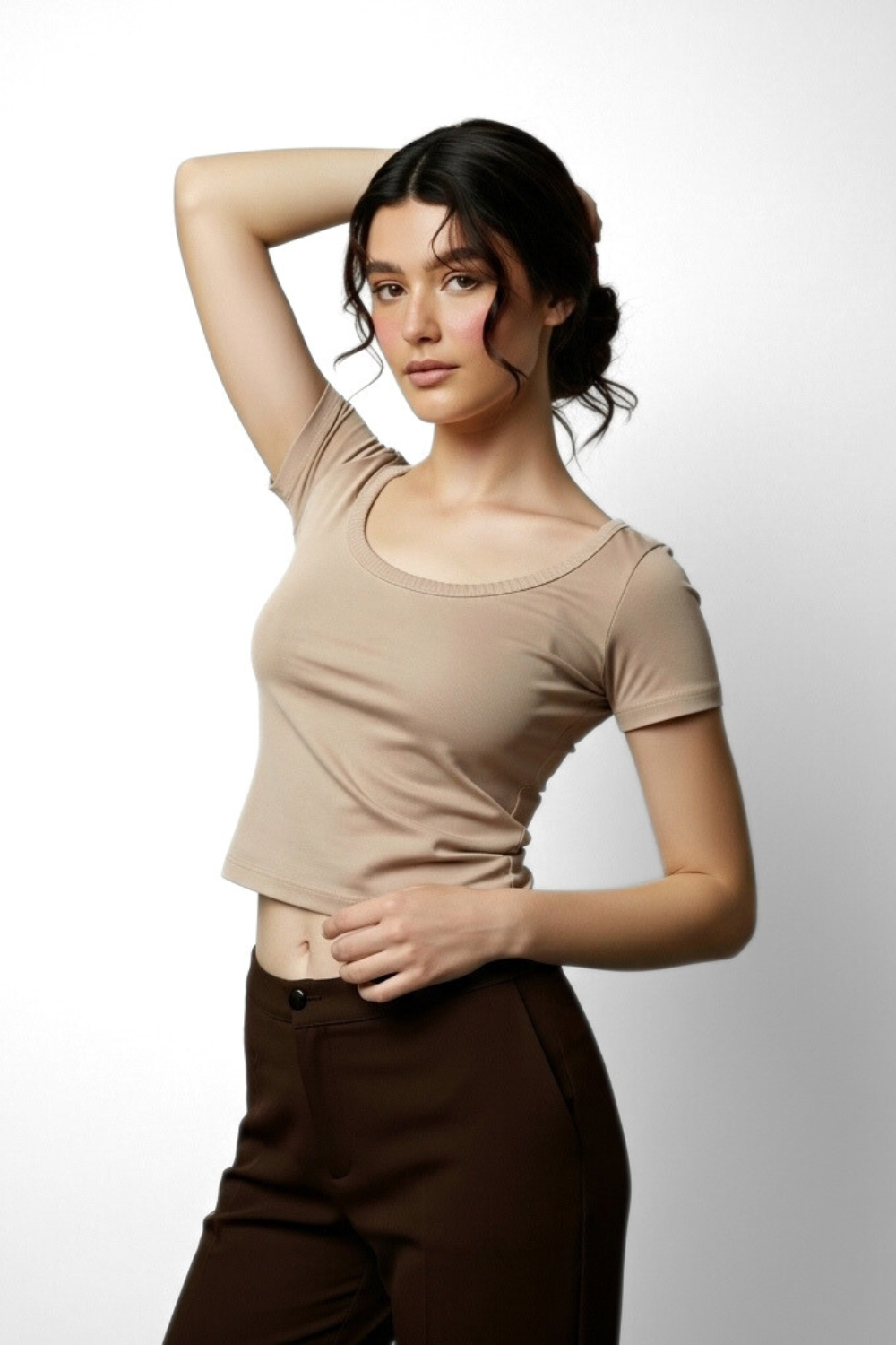 Meet Vayra — a top that moves like air and feels like second skin. Crafted from a rich, stretch-kissed blend of cotton and spandex, Vayra brings together softness, structure, and breathability in a silhouette that’s made to flatter.