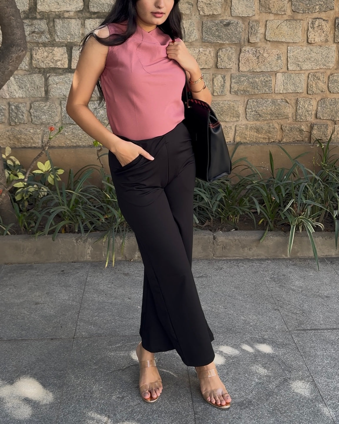 Boss Babe High Waist Wide Leg Pants by Cheesewalk are crafted for versatility and all-day comfort. Made from a luxurious 300 GSM rayon blend, with 8% spandex for ultimate stretchability, these high-waist trousers feature an invisible zip at the back with an 8-inch length for a sleek, discreet and secure fit.