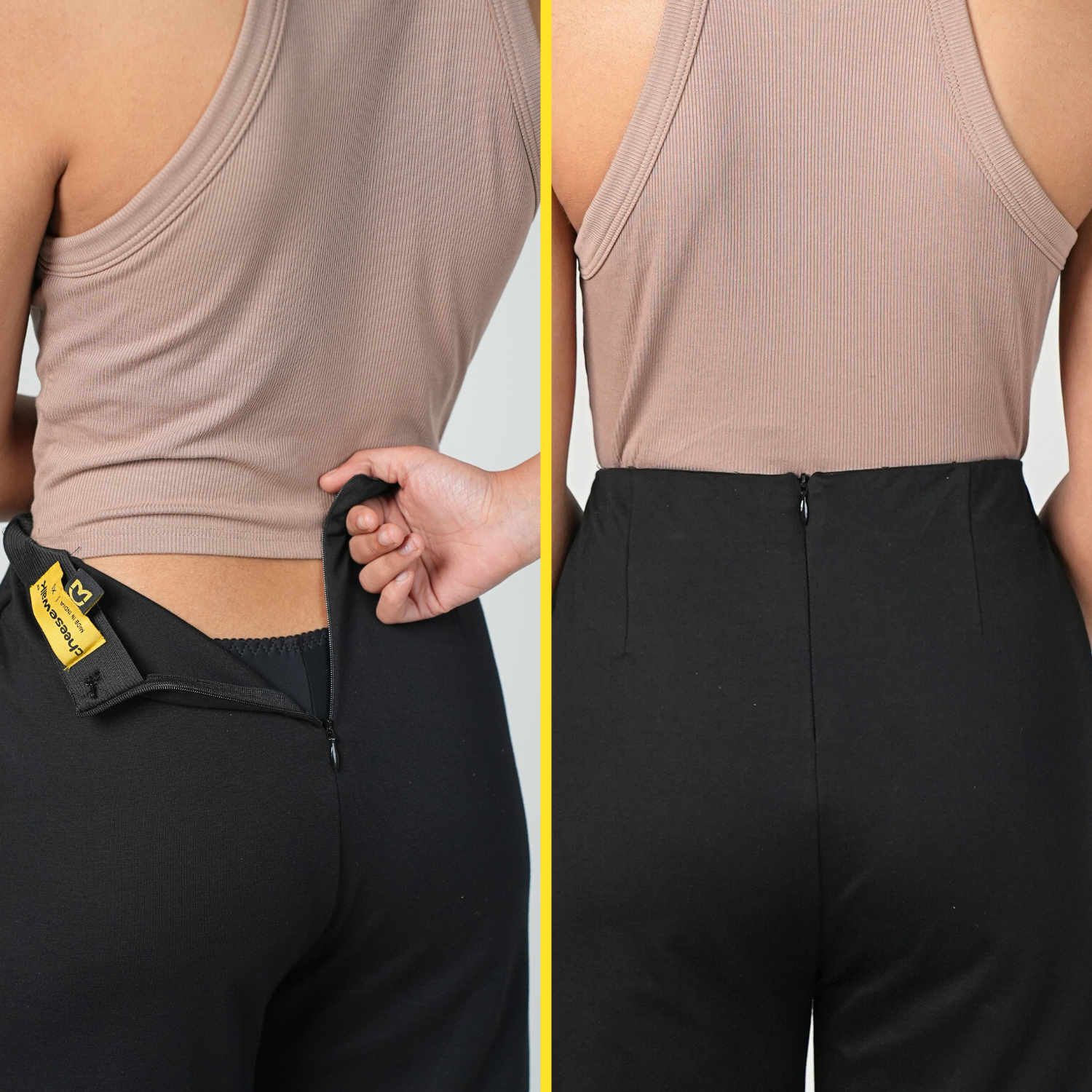 • Features an 8-inch invisible zip at the back for smooth functionality.
